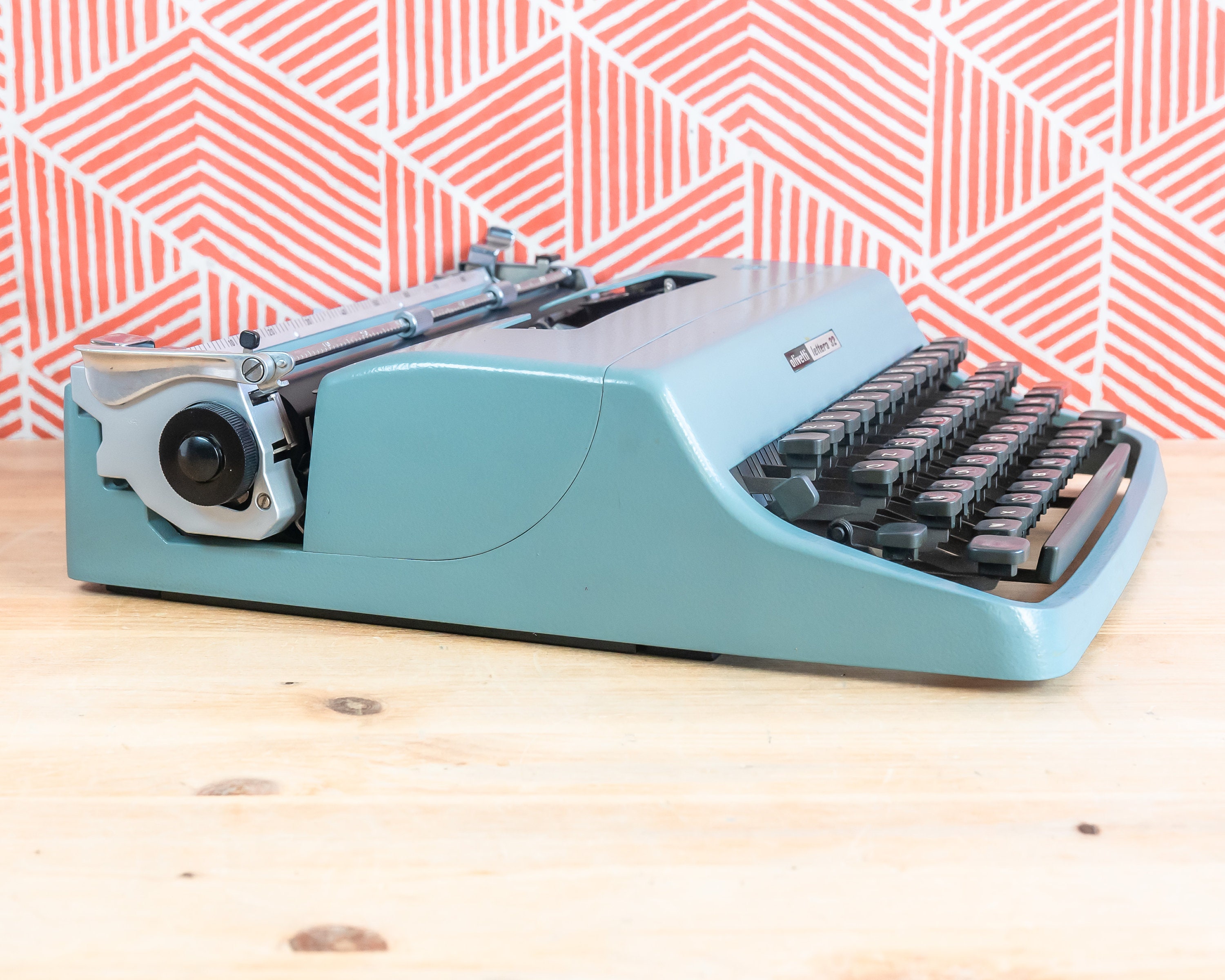 WVintage Olivetti Lettera 32 Typewriter Green Spain Case, Manual On offer is a Teal Green late-production Olivetti Lettera 32 compact portable mechanical typewriter. Made in Spain. The Lettera 32 was designed in 1963 as a replacement for Olivetti's highly successful Lettera 22, designed for prolonged use by professionals.
